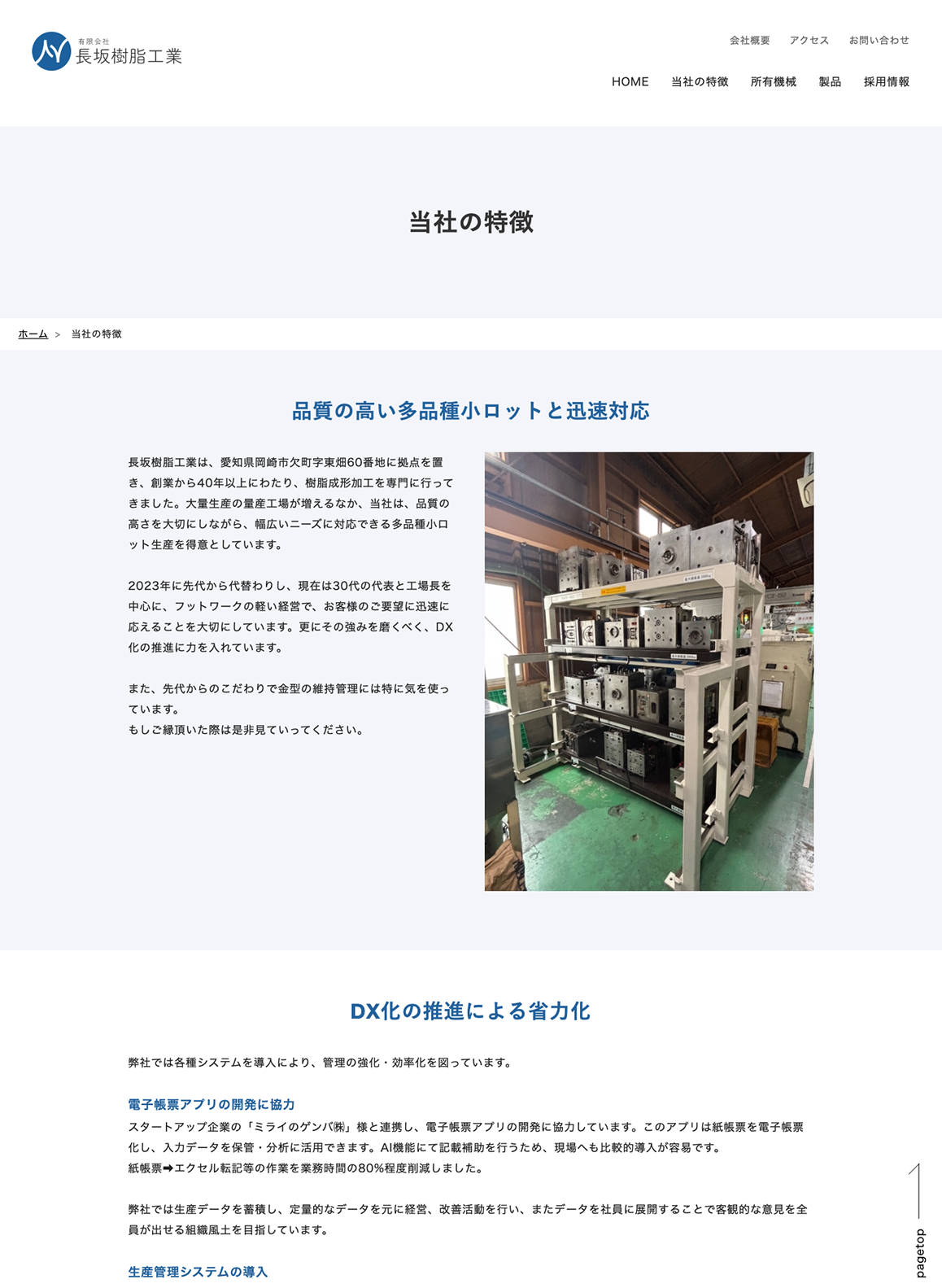 シンプルで見やすい構成を意識しながら、自社の技術や特徴が伝わるよう内容を整理。以前よりも信頼感のある印象になり、採用や取引の場面でも安心して案内できるようになったと思います。