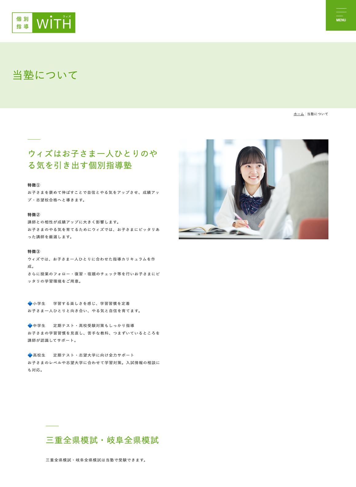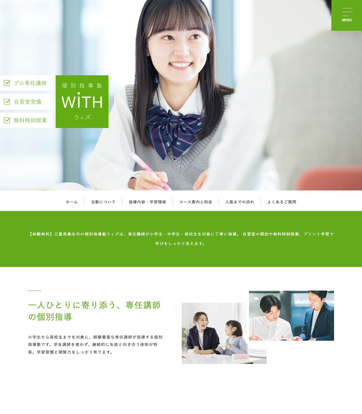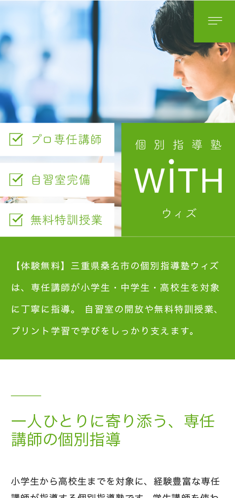 以前からホームページはありましたが、長年更新ができておらず、内容が塾の現状と合っていませんでした。お客様もアクセスしづらい状態だったため、新しいシステムを探していたところ「とりあえずHP」を見つけました。