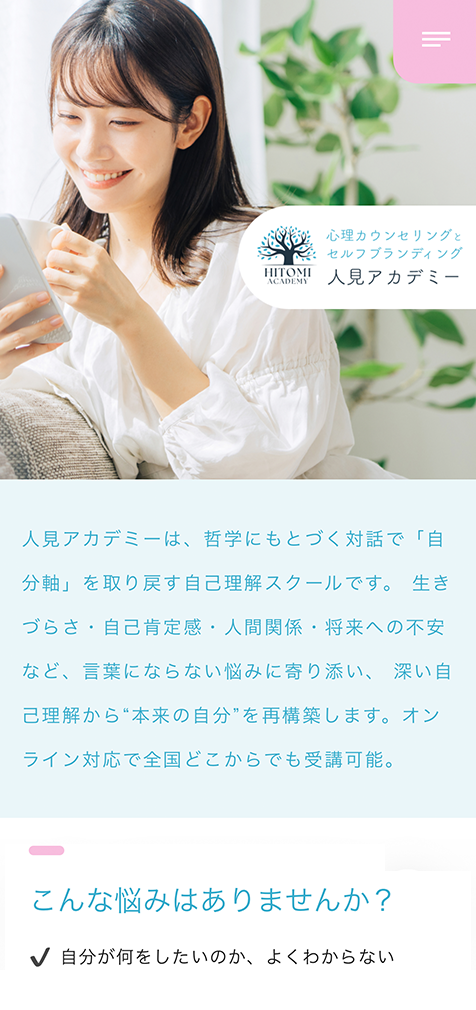 以前、別事業のホームページをとりあえずHPでリニューアルした経験もあったため、デザインのクオリティは信頼していました。プロからアドバイスをもらいながら調整を重ね、文章の見せ方やページ構成を整えたことで、カウンセリングの考え方や雰囲気が伝わりやすくなったと感じています。