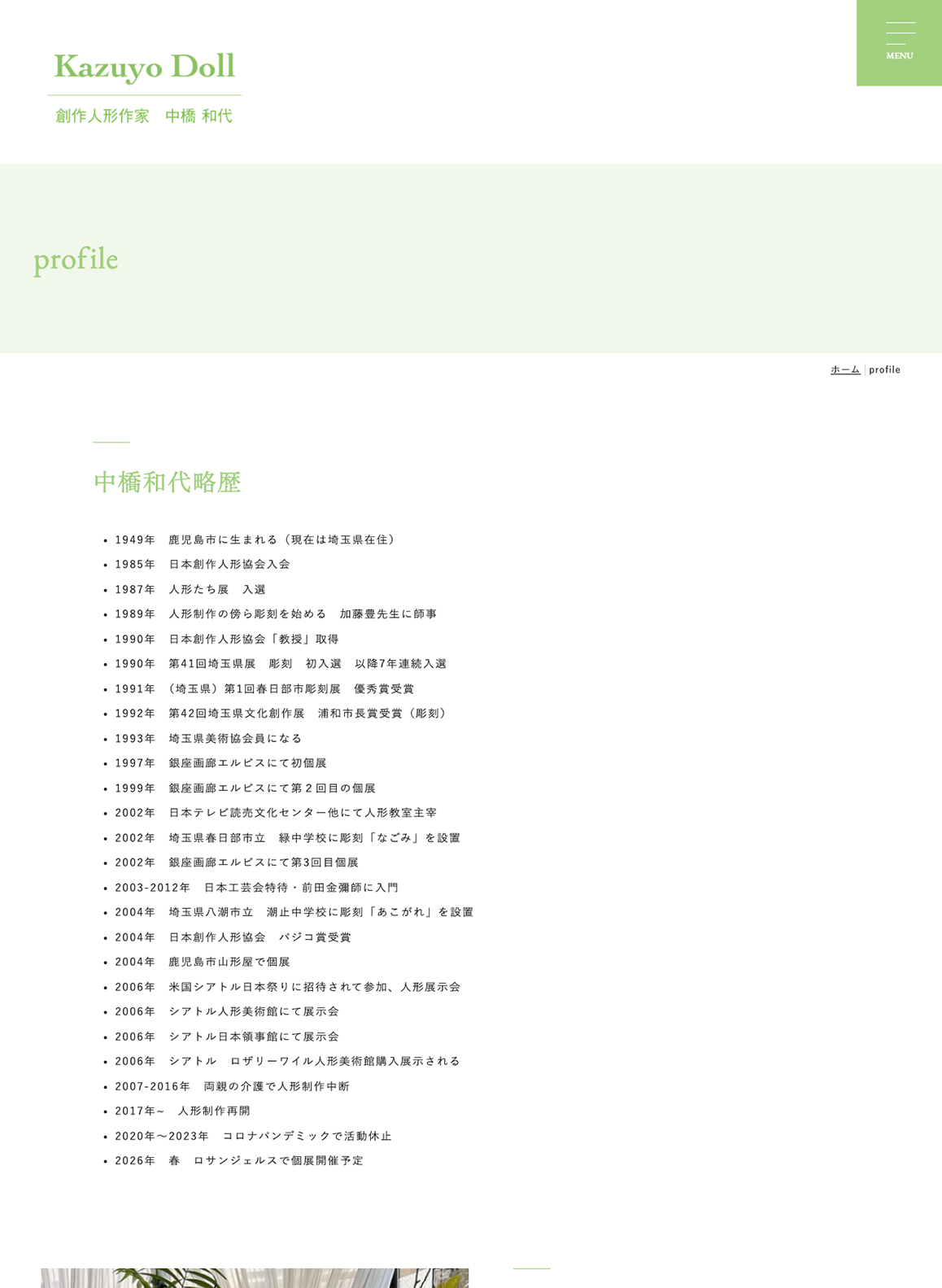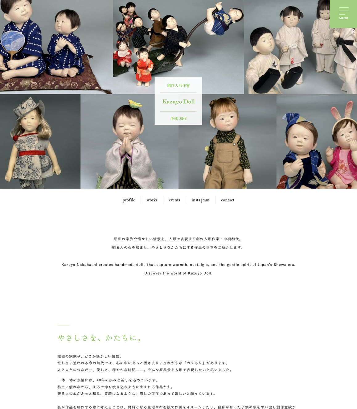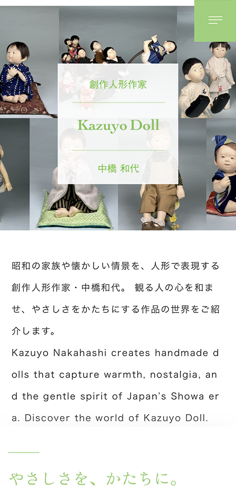 国内外に「作品を見たい」と言ってくださる方が増えている中で、ホームページは作品を紹介する大切な場になっています。これからもホームページを通じて、より多くの方に Kazuyo Doll の世界観を知っていただけたら嬉しいです。