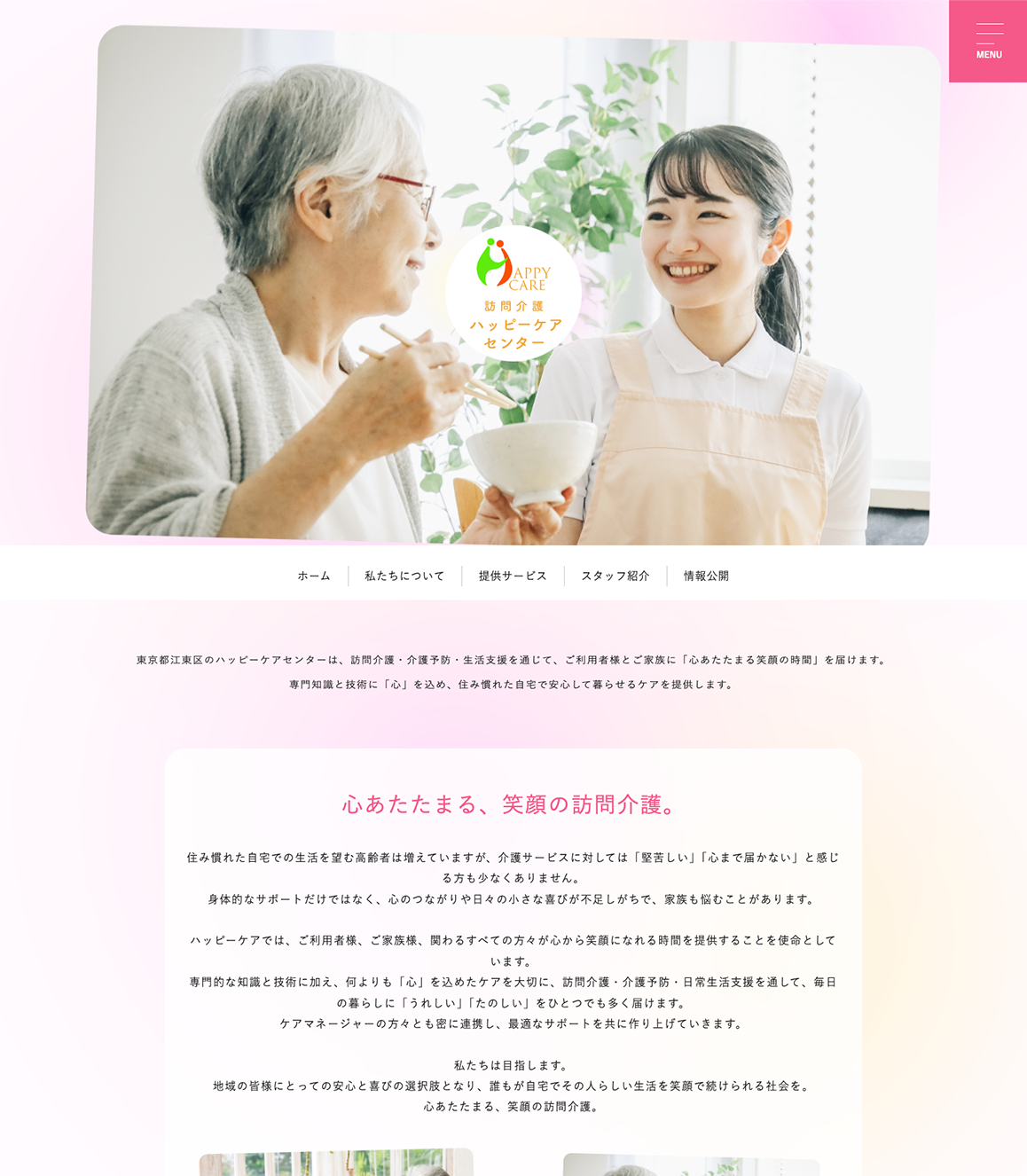デザインは、全体的に柔らかく、訪問介護・介護予防・生活支援という事業内容にぴったりの雰囲気に仕上がりました。利用者の方やご家族にも安心して見ていただけそうで、スタッフからも「見やすくなった」「やさしい印象でいいね」と好評です。