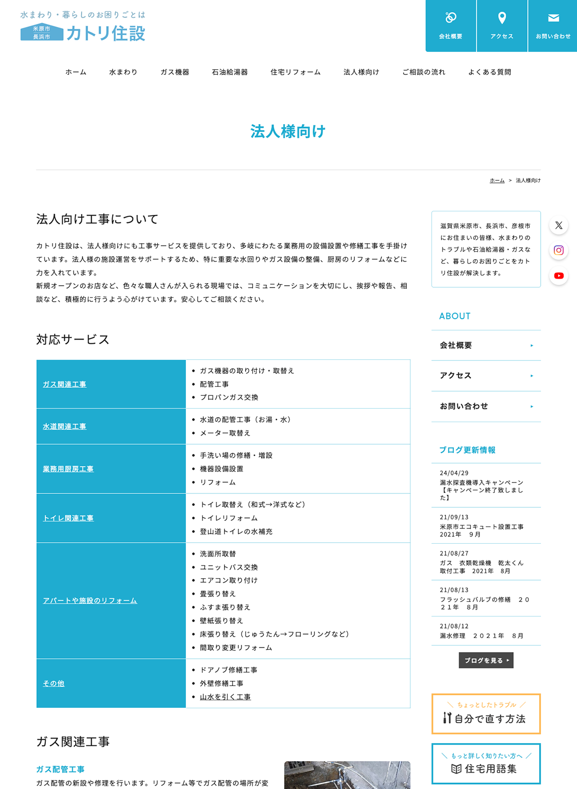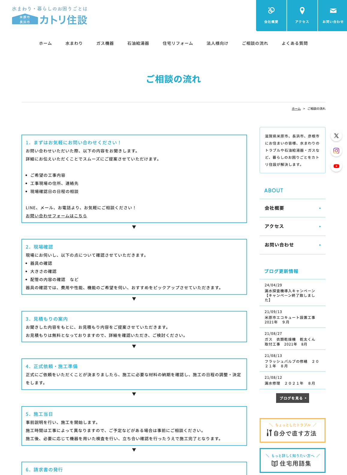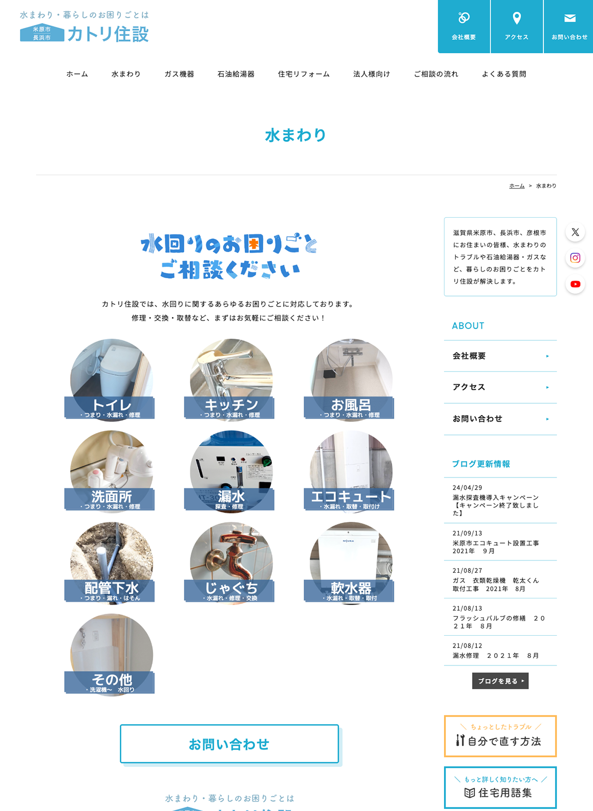 当社は、水回りの修理やガス機器の点検・交換、住まいのリフォームまで幅広く対応しています。今後は、このホームページを通じて、これまで接点のなかった方にも当社の存在を知っていただき、ご相談のきっかけをさらに広げていきたいと考えています。