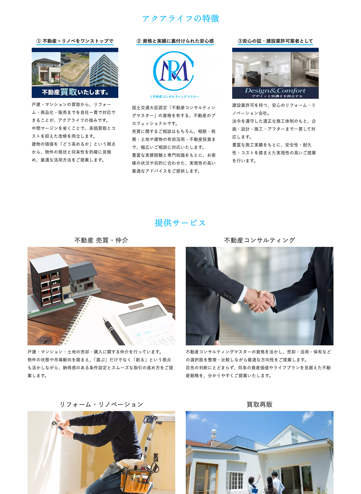 当社は不動産売買・仲介から建築リフォームまで一貫して対応しており、既存のお客様との信頼関係を大切にしています。今後は、このホームページを名刺代わりのように活用し、会社のことをチェックされたときに、安心していただけるような場所にしていきたいと思います。