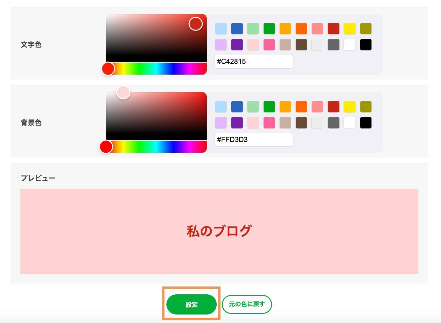 好みの色に変更したら、[設定]を押して保存します。