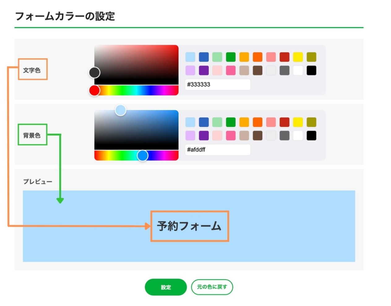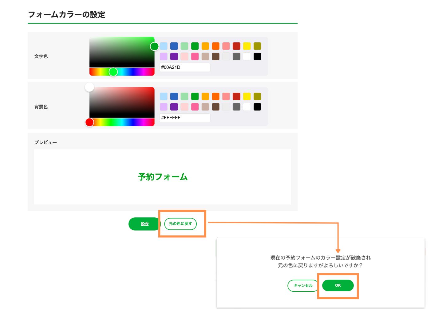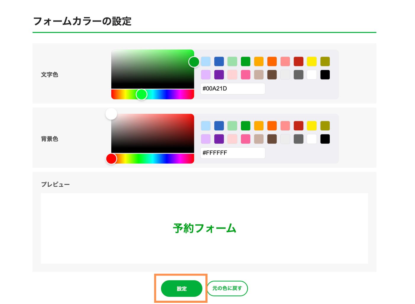 1.『フォームカラーの設定』から、予約フォーム名の文字色と背景を設定します