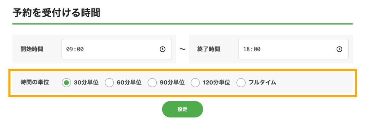 ※定休日など一部の日付を除外したい場合や、一部の時間帯を除外したい場合は「予約受付を除外したい日時を設定する」の記事で解説しています。
