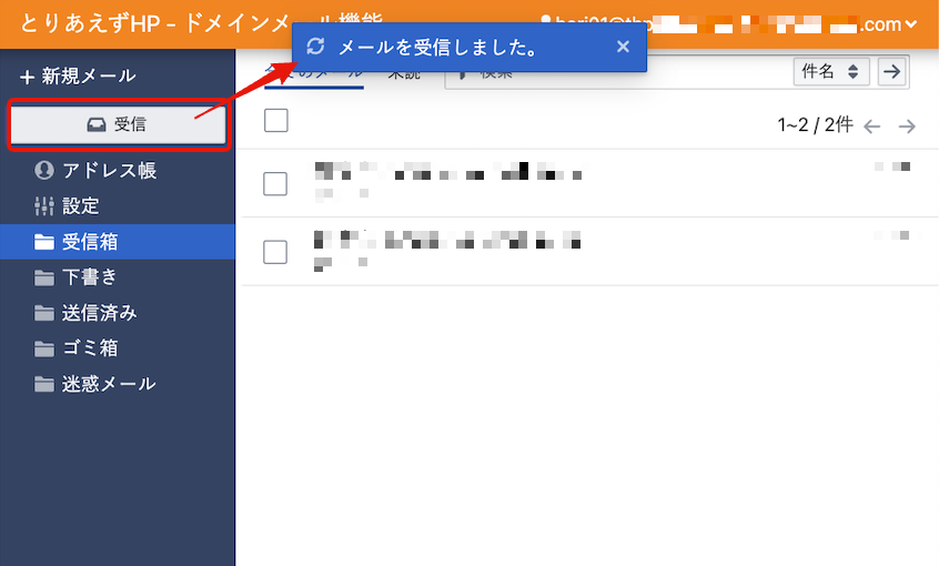 メールが受信されます。