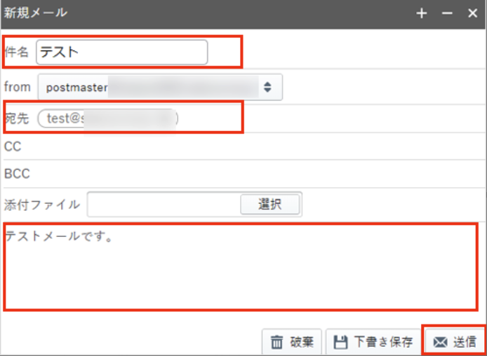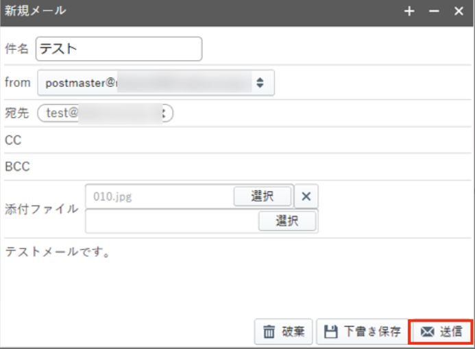 件名・宛先・メール本文を入力し、『 送信 』をクリックします。