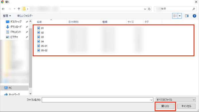 ファイルの選択画面が表示されます。添付したいファイルを選択し、『 開く 』をクリックします。