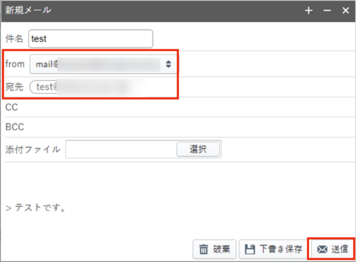 [from]欄でメールアドレスを選択します。