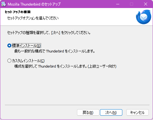 「標準インストール」を選択した状態で「次へ」をクリックします。