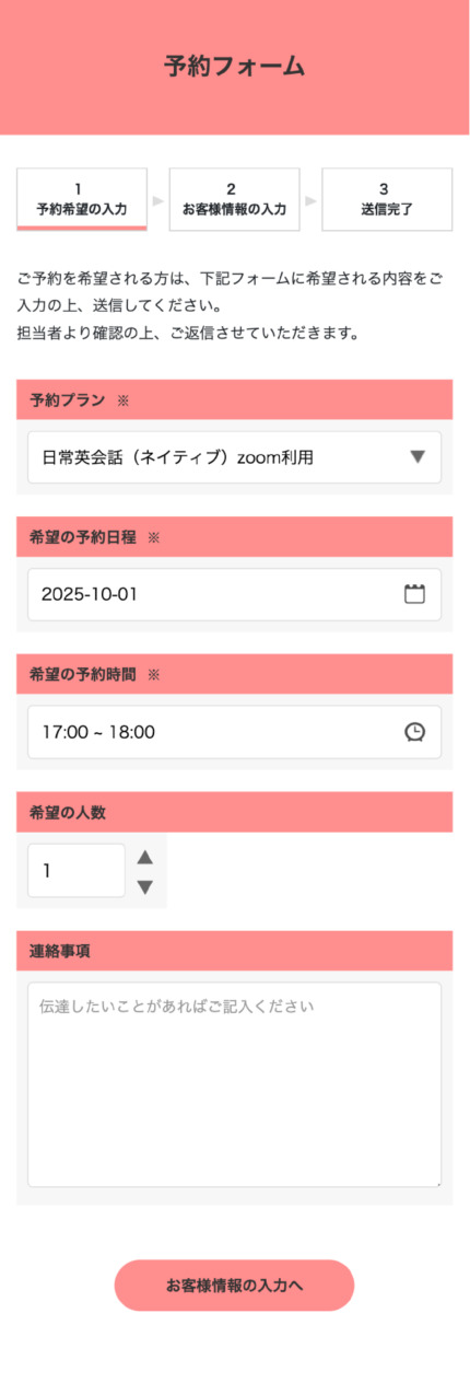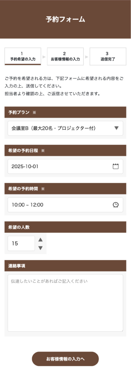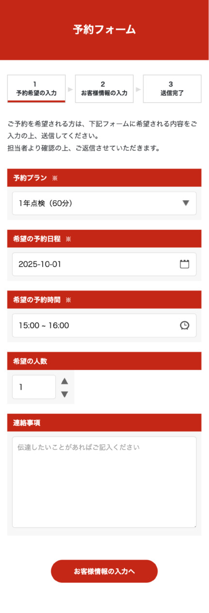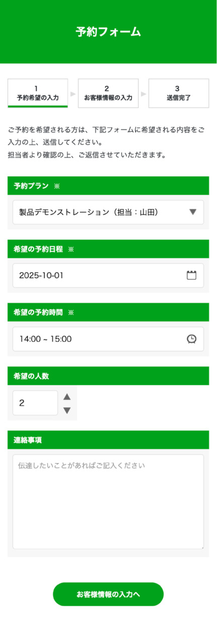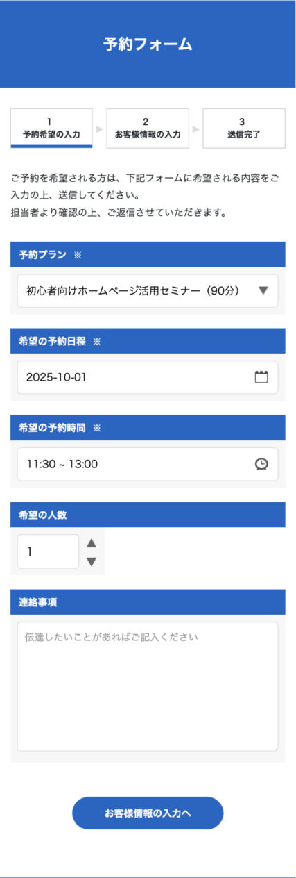 スタンダードプランでは、予約フォーム機能を利用することが可能です。