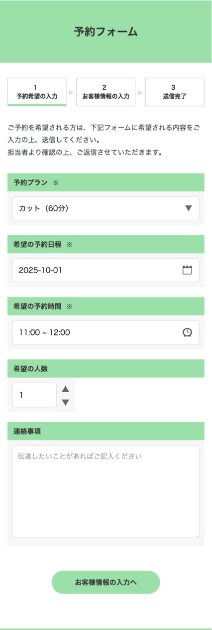 予約フォーム機能を使って、サービス提供の予約(ご来店の予約)を受け付けることができます。