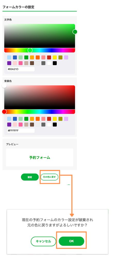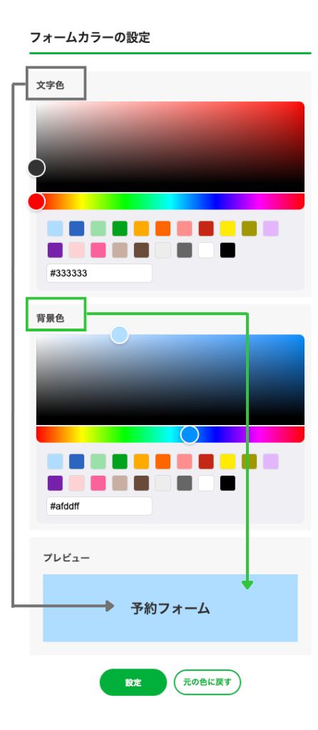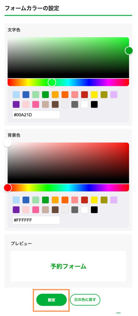 1.『フォームカラーの設定』から、予約フォーム名の文字色と背景を設定します