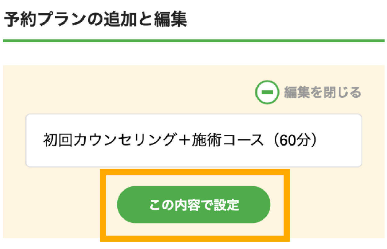 45分コースなど、選択肢にはない時間枠で設定したい場合は、時間単位は60分などの近しいものを利用しつつ、プラン名は「45分コース」と名付けておく、といった工夫で対応が可能です。
