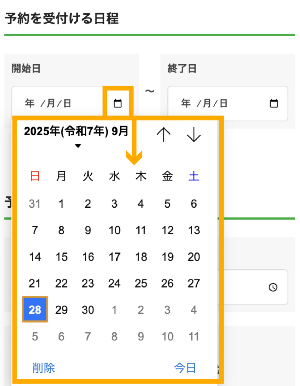 予約フォーム機能を活用する予約を受付ける日時を設定する