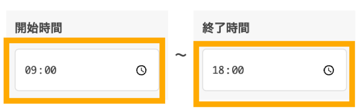 例)営業時間が 9:00〜18:00 の場合 → 開始 09:00、終了 18:00
