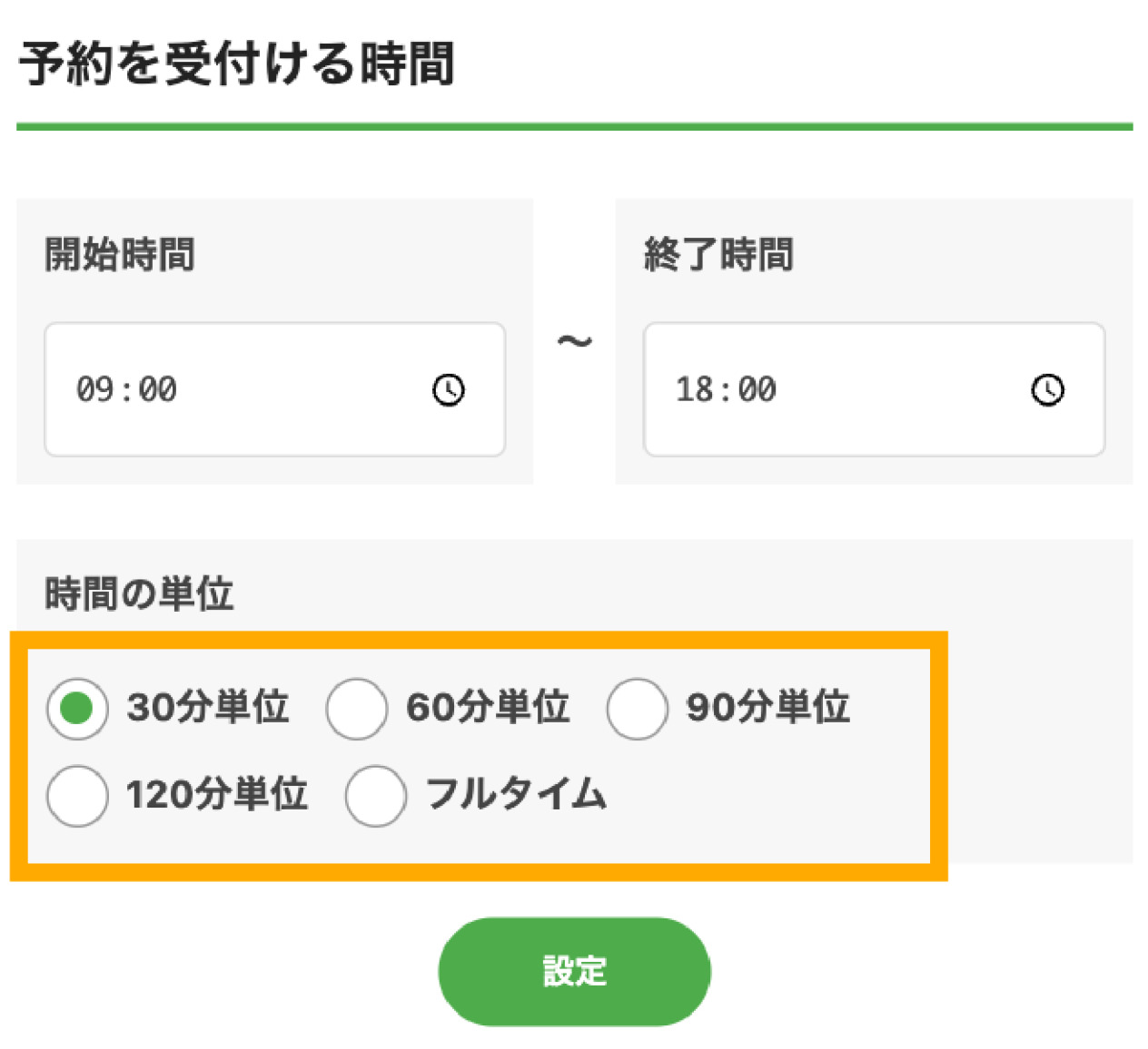 ※定休日など一部の日付を除外したい場合や、一部の時間帯を除外したい場合は「予約受付を除外したい日時を設定する」の記事で解説しています。